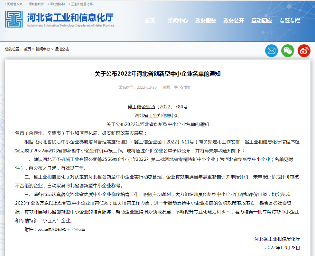 恭喜冠香居公司榮獲2022年河北省創(chuàng)新型中小企業(yè)!